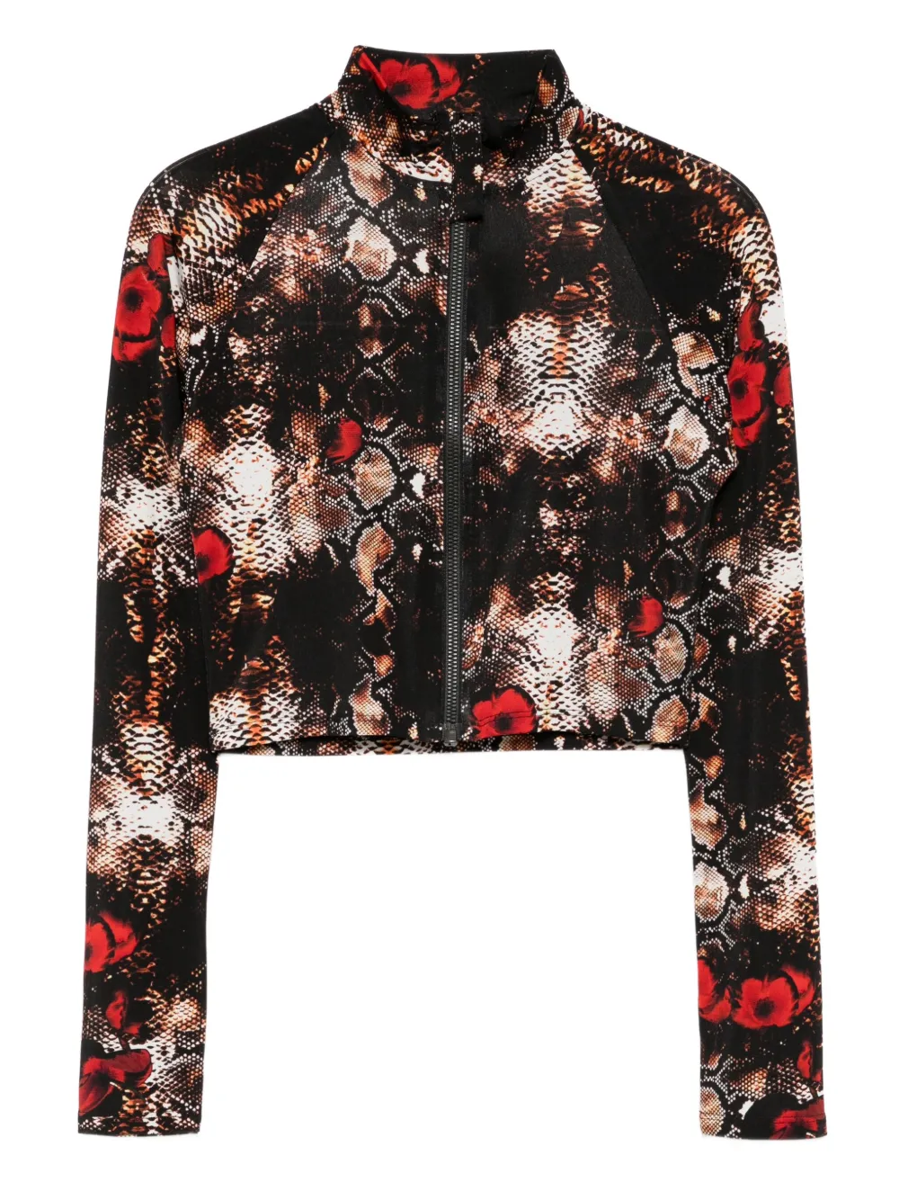 marron imprimé peau de serpent col montant fermeture zippée manches longues