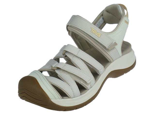 Teva comfortabele en multifunctionele outdoor dames sandaal. Deze sandaal van Teva heeft als modelnaam Tirra sport en het artikelnummer is: 1166310-BIR. De kleur is birch oftewel offwhite. Deze watersandaal heeft een dichte neus zodat de schoen geschikt is voor alle avonturen. De sandalen zijn perfect voor alle soorten wandelingen. De sneldrogende banden zijn van gerecycled plastic en ondersteunen je voet. Door de klittenbandsluiting trek je de schoenen snel aan en kun je ze perfect passend maken. De dempende Shoc Pad in de hiel absorbeert de schokken wanneer je op een harde ondergrond loopt. De voorgevormde EVA-middenzool biedt ondersteuning bij je voetholte en stabiliseert bij onregelmatige ondergronden. De robuuste buitenzool is zeer stevig en biedt goede grip. De sandaal is daarnaast behandeld met Life Naturals, dit betekend dat dat schoen op een verantwoorde wijze een antimicrobiële stof op basis van pepermunt heeft gekregen die de groei van geur veroorzakende bacteriën bestrijdt.