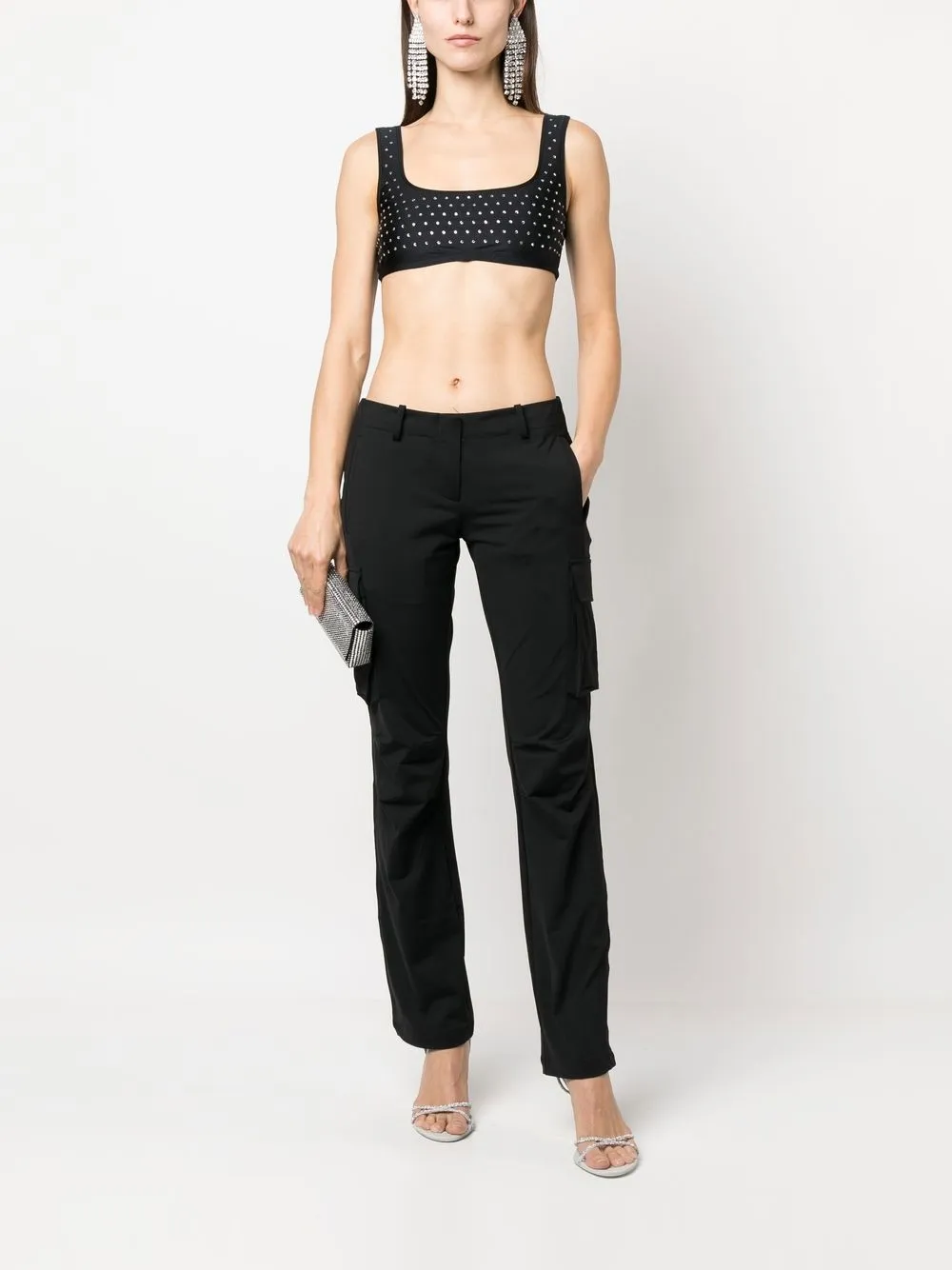 zwart stretch design verfraaid met kristallen vierkante hals mouwloos rechte zoom