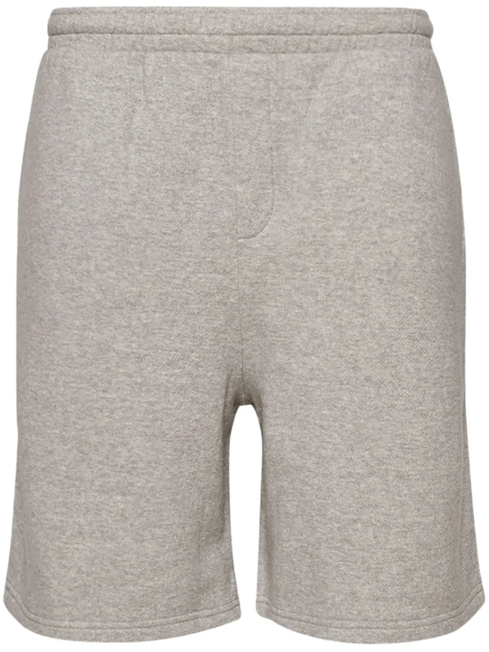 gris médium coton ceinture élastique deux poches latérales passepoilées poche arrière plaquée ourlet droit longueur au dessus du genou ^