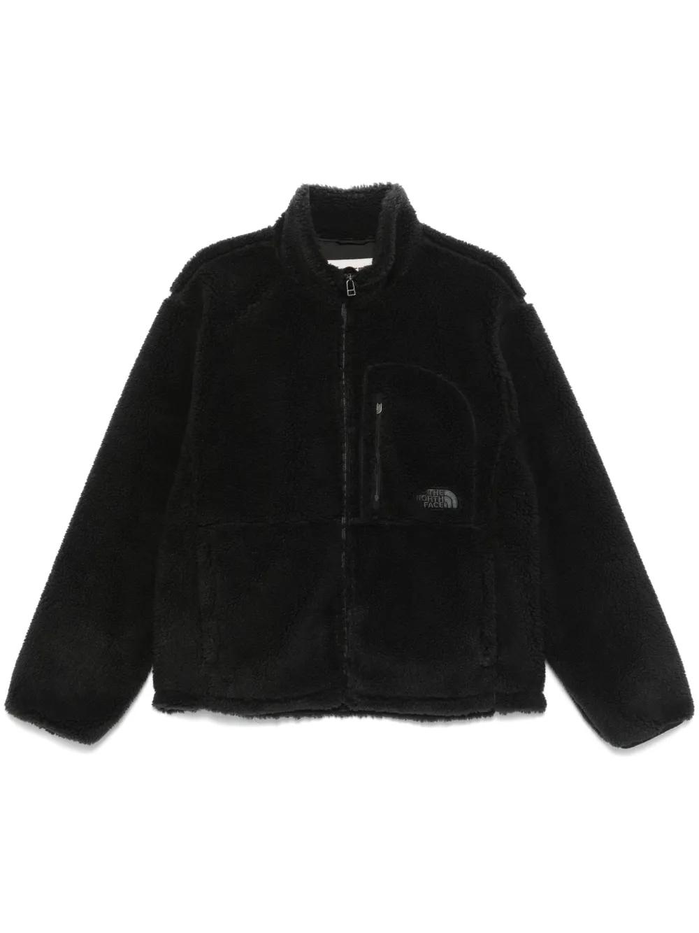 col montant noir texture en polaire fermeture zippée devant col montant épaules tombantes manches longues poignets élastiqués poche poitrine zippée logo brodé sur le côté deux poches latérales passepoilées doublure intégrale ourlet à lien de resserrage
