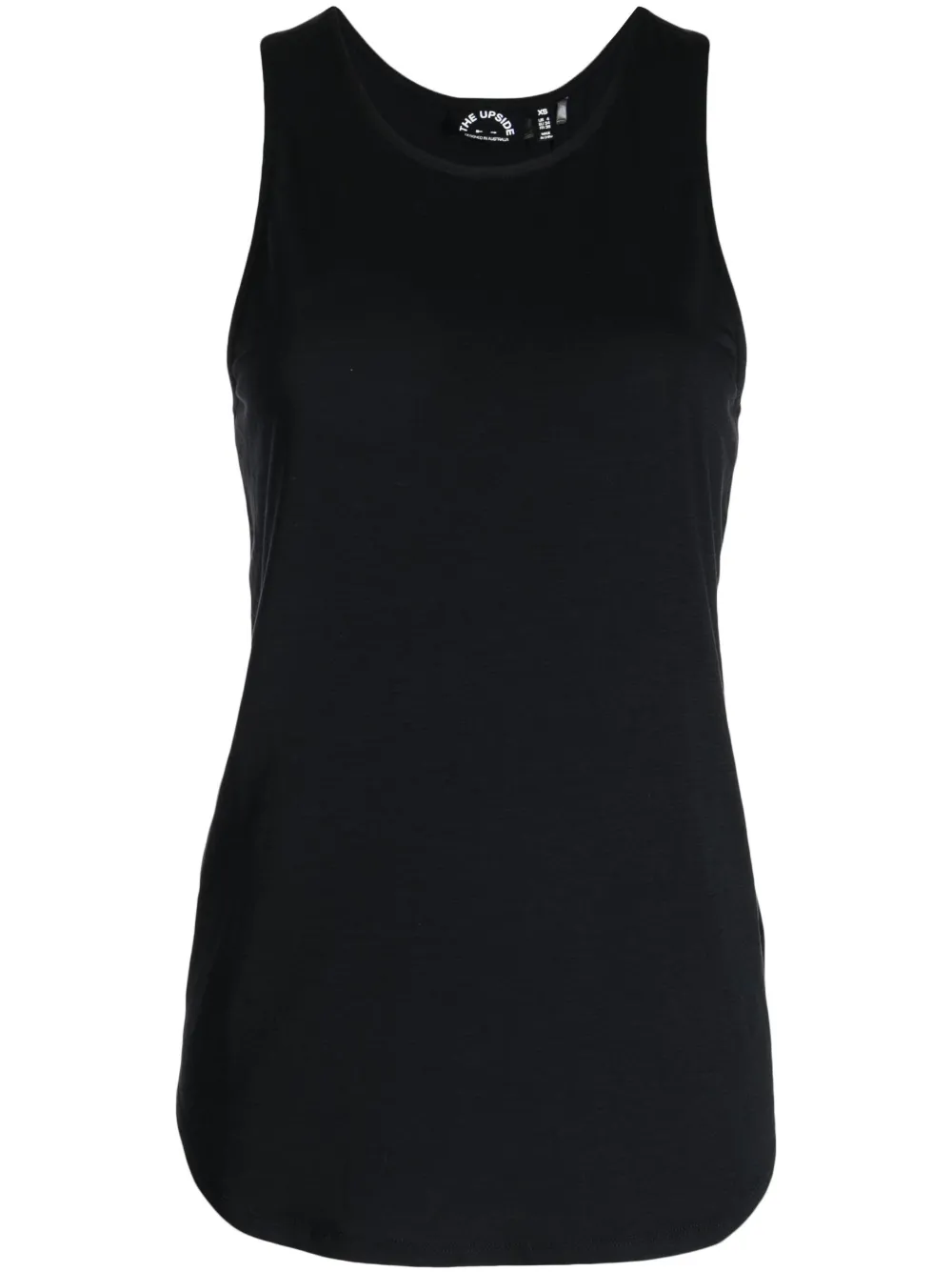 Noir, polyester recyclé mélangé, col arrondi, design sans manches, dos nageur, ourlet droit. .