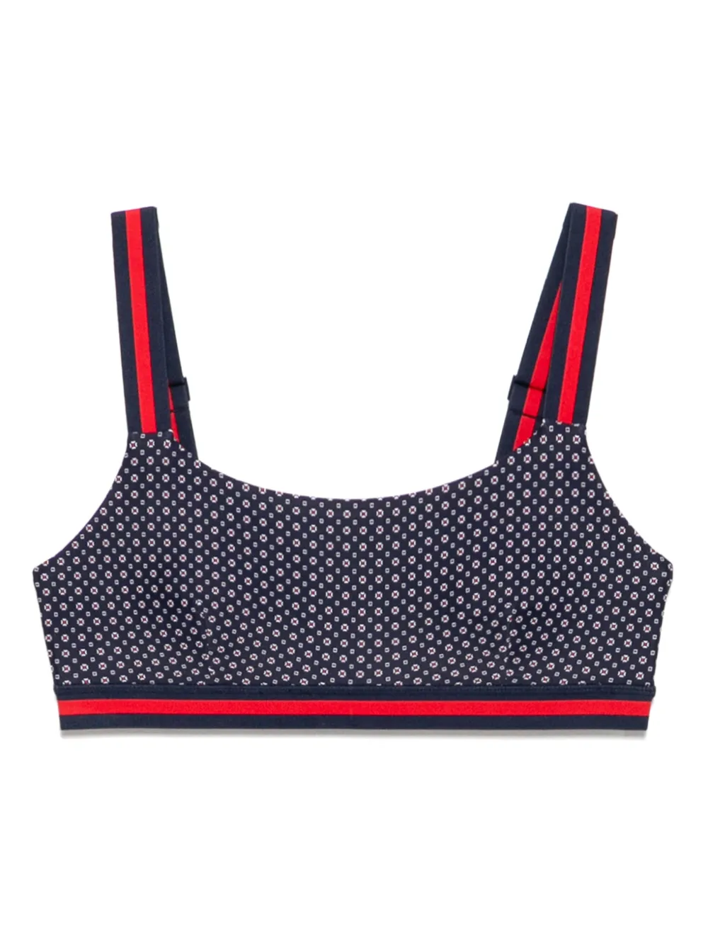 bleu marine brides portées épaule ajustables ourlet élastiqué design matelassé