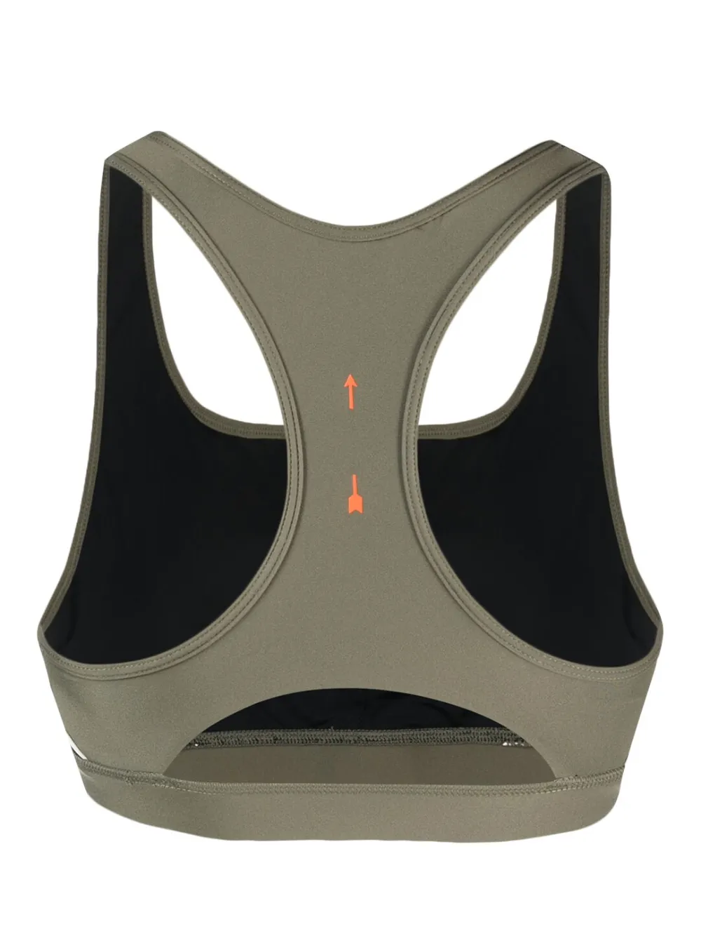 Donkergroen, gerecyclede polyamidemix, stretch design, racerback, ronde hals, mouwloos en rechte zoom. .