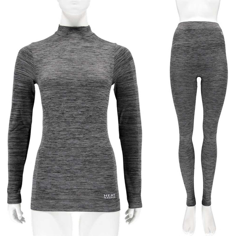 Thermo kleding set shirt lange mouw en broek ondergoed zwart melange voor dames maat L. Warme thermo kleding set in de kleur zwart melange voor dames. Merk: Heat Keeper. Materiaal: 60% Polyester 35% Polyamide 5% Elastane. Thermo wintersport kleding. U ontvangt 1 shirt en 1 (onder)broek in maat L. , Dit artikel bestaat uit:, 1x Thermo shirt zwart melange lange mouw voor dames, 1x Thermo broek ondergoed voor dames zwart melange