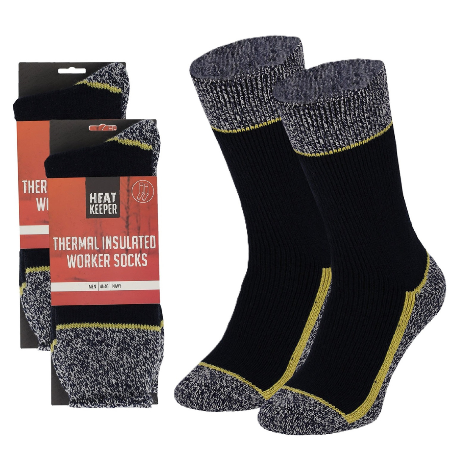2x paar thermo werk sokken in het blauw voor heren en dames in maat 41-46. Deze zachte blauwe werksokken houden uw voeten te allen tijde warm en zijn zeer geschikt om te werken in koude omstandigheden. Door de speciale isolerende draad blijven uw voeten lekker warm en wordt het zweet goed afgevoerd. Materiaal: 91% Acryl / 7% Nylon / 2% Elastaan. Werksokken voor volwassenen.