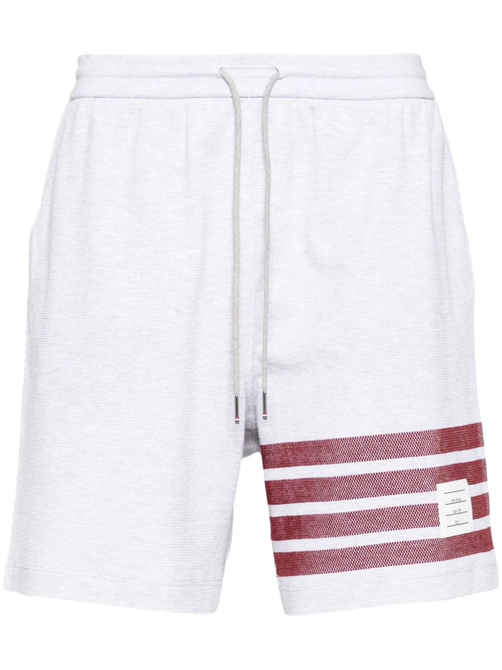 gris chiné/rouge foncé coton tissage piqué 4 bandes signature taille élastique à lien de resserrage poches latérales fendues patch logo sur le devant rayures tricolores coupe droite