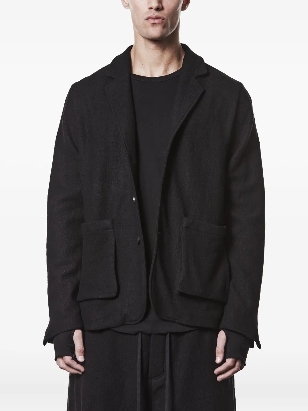 noir laine poches plaquées fermeture boutonnée revers crantés manches longues
