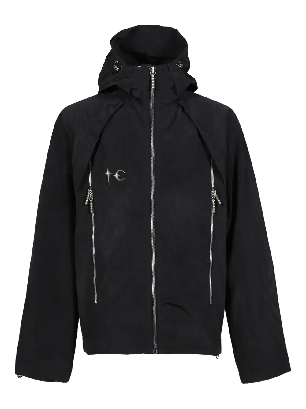 noir fermeture zippée devant capuche à lien de resserrage deux poches latérales zippées ourlet à lien de resserrage