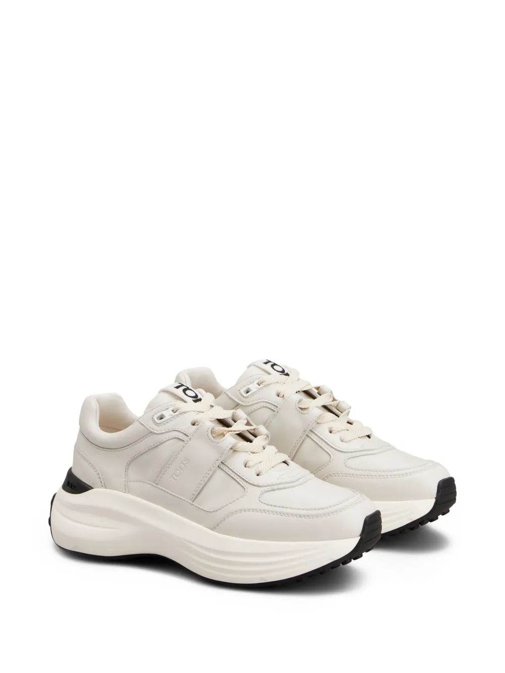 wit vetersluiting aan de voorkant ronde neus chunky rubberen zool logopatch op de tong