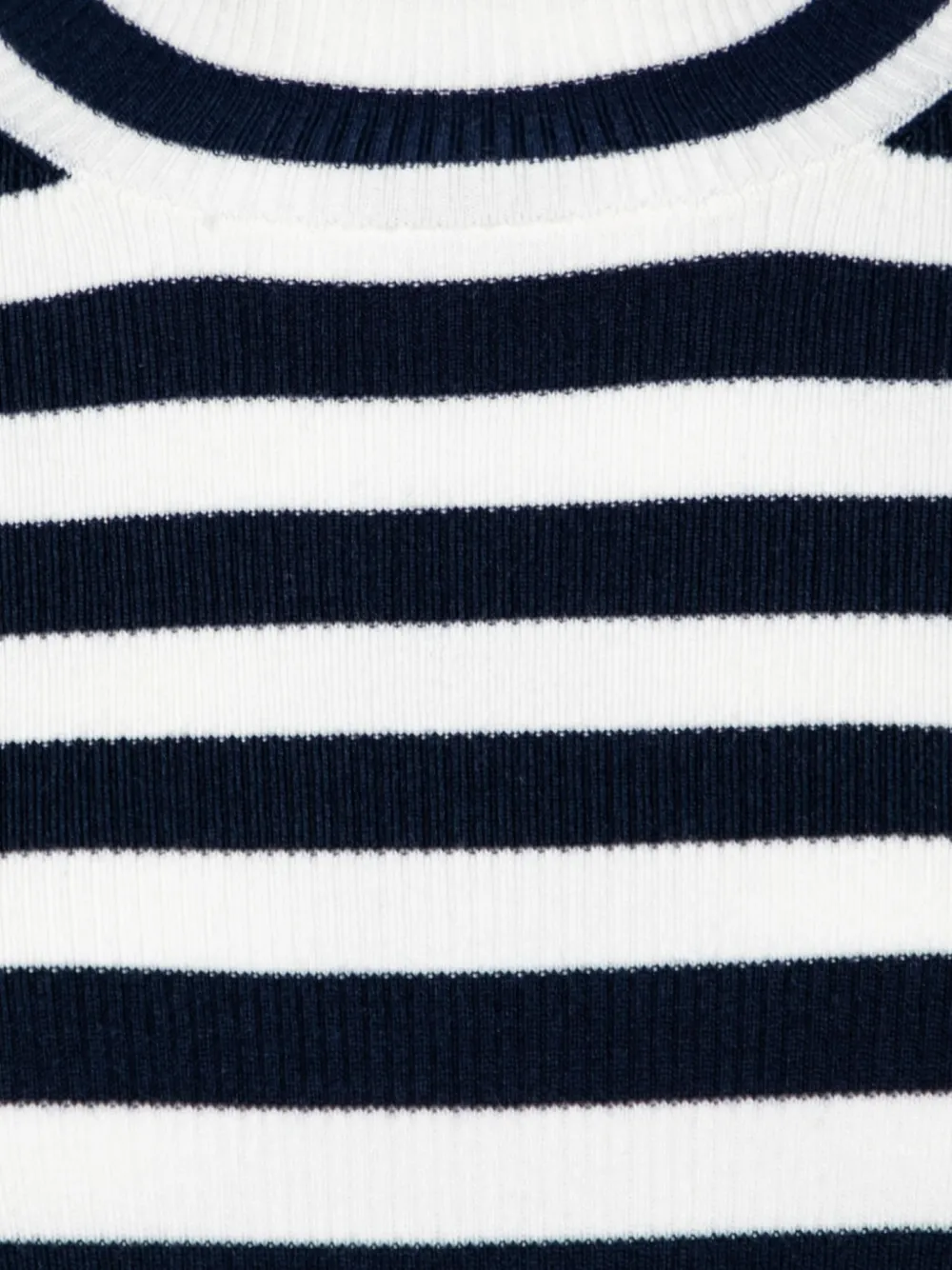 marineblauw/wit gestreept patroon wol col lange mouwen ribgebreid