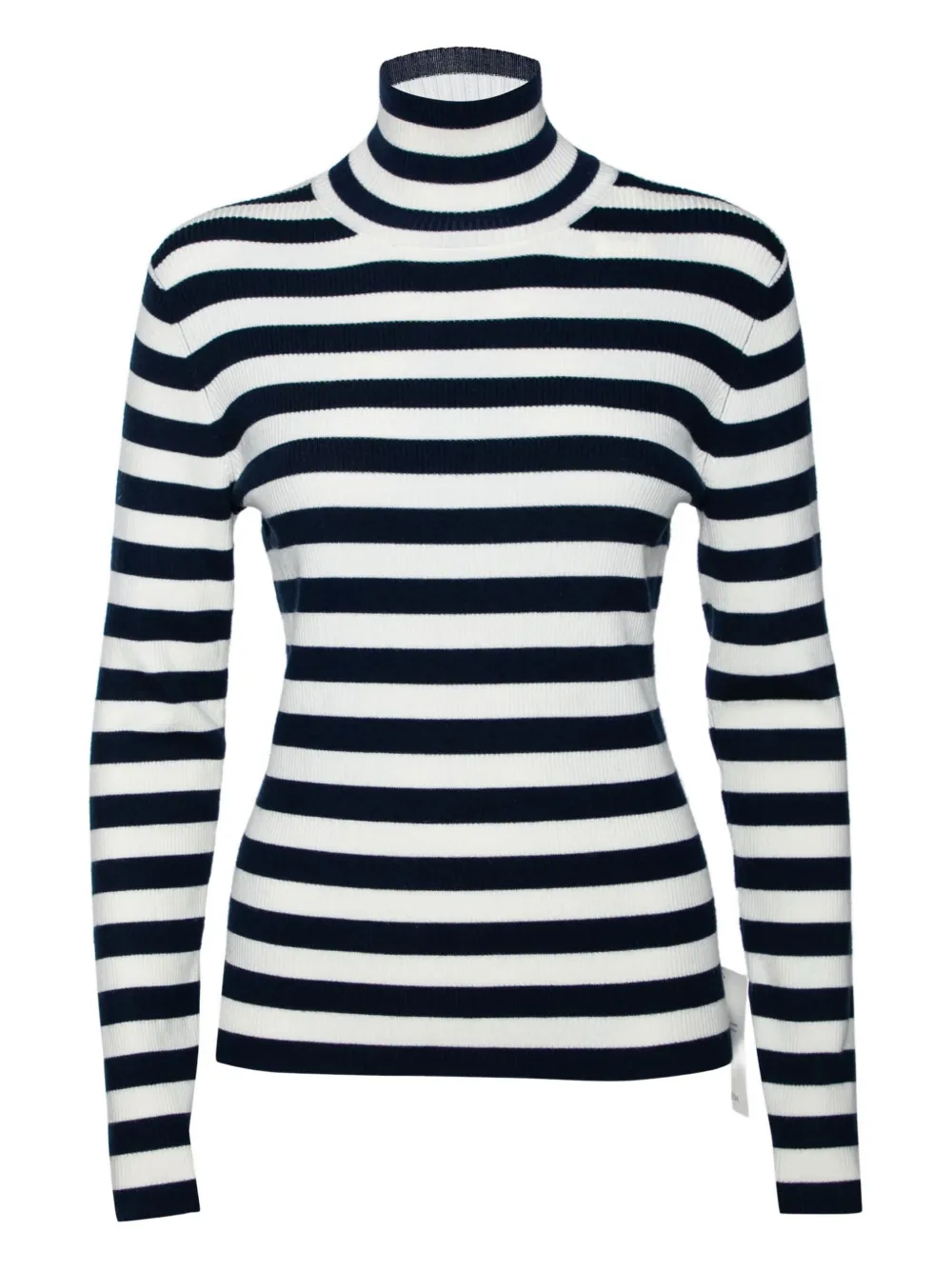 bleu marine/blanc motif de rayures laine col roulé manches longues maille nervurée