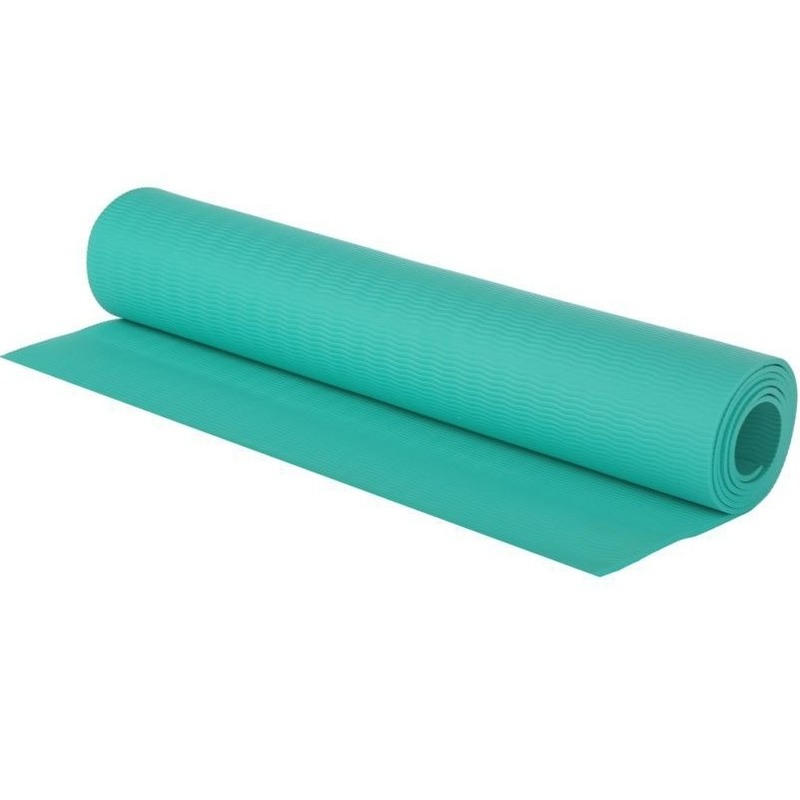 Een turquoise blauwe lichtgewicht yogamat, gemaakt van schuim/kunststof/eva. De mat is antislip, antistatisch en antibacterieel. Incl. 2 elastieken. Afmeting: ca. 180 x 60 x 0,5 cm. Turquoise blauwe sportmatten voor o.a. yoga, pilates en fitness.