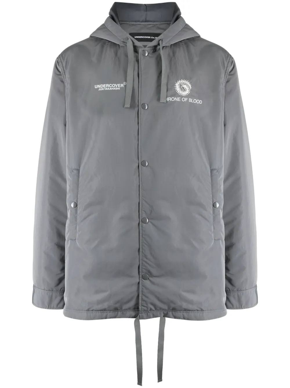 imprimé graphique gris logo imprimé sur la poitrine slogan imprimé imprimé façon illustration capuche à lien de resserrage fermeture à boutons pression sur le devant manches longues ourlet à lien de resserrage ourlet droit
