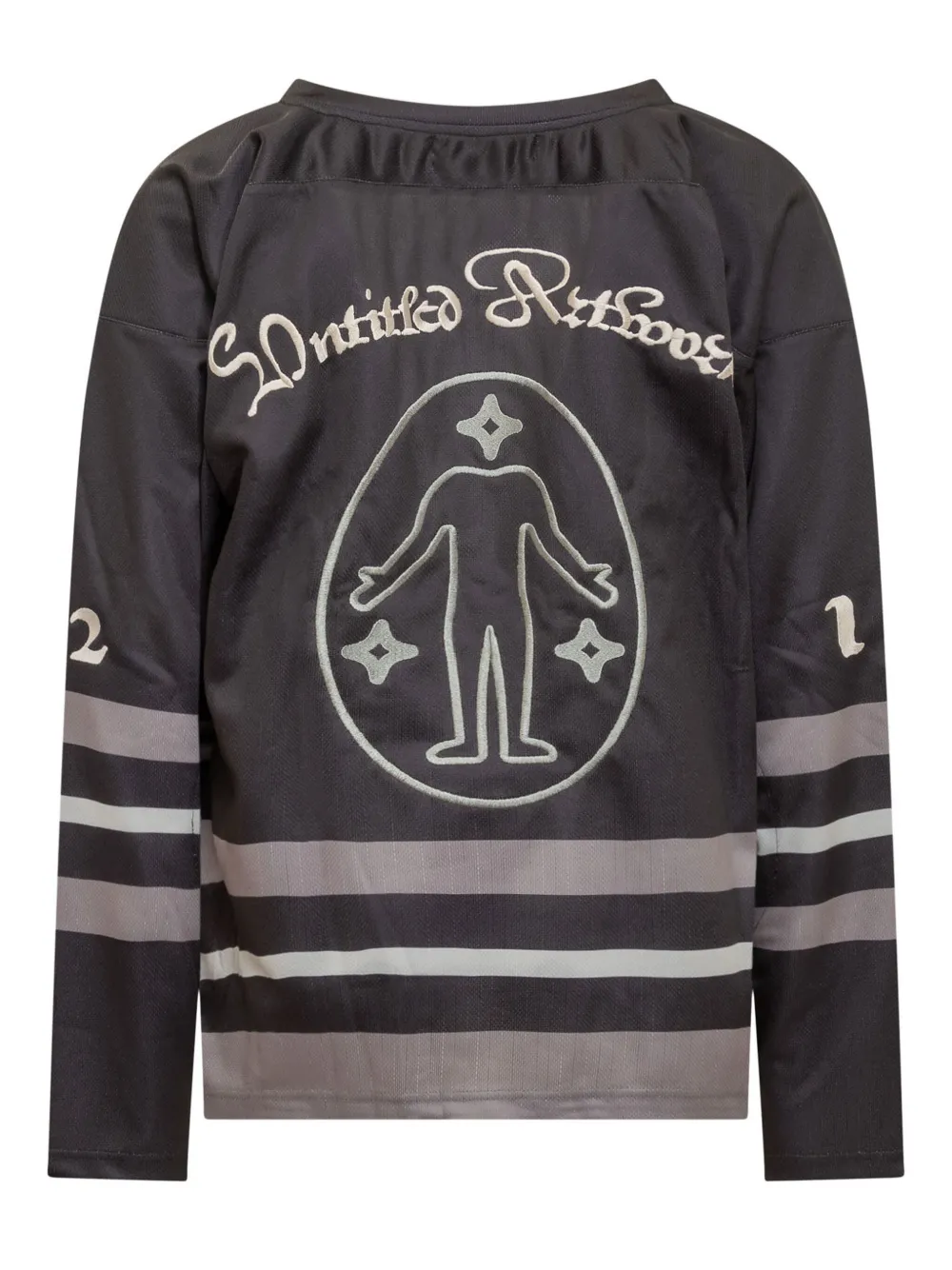 zwart logoprint op de voorkant V-hals lange mouwen geborduurd logo aan de achterkant rechte zoom