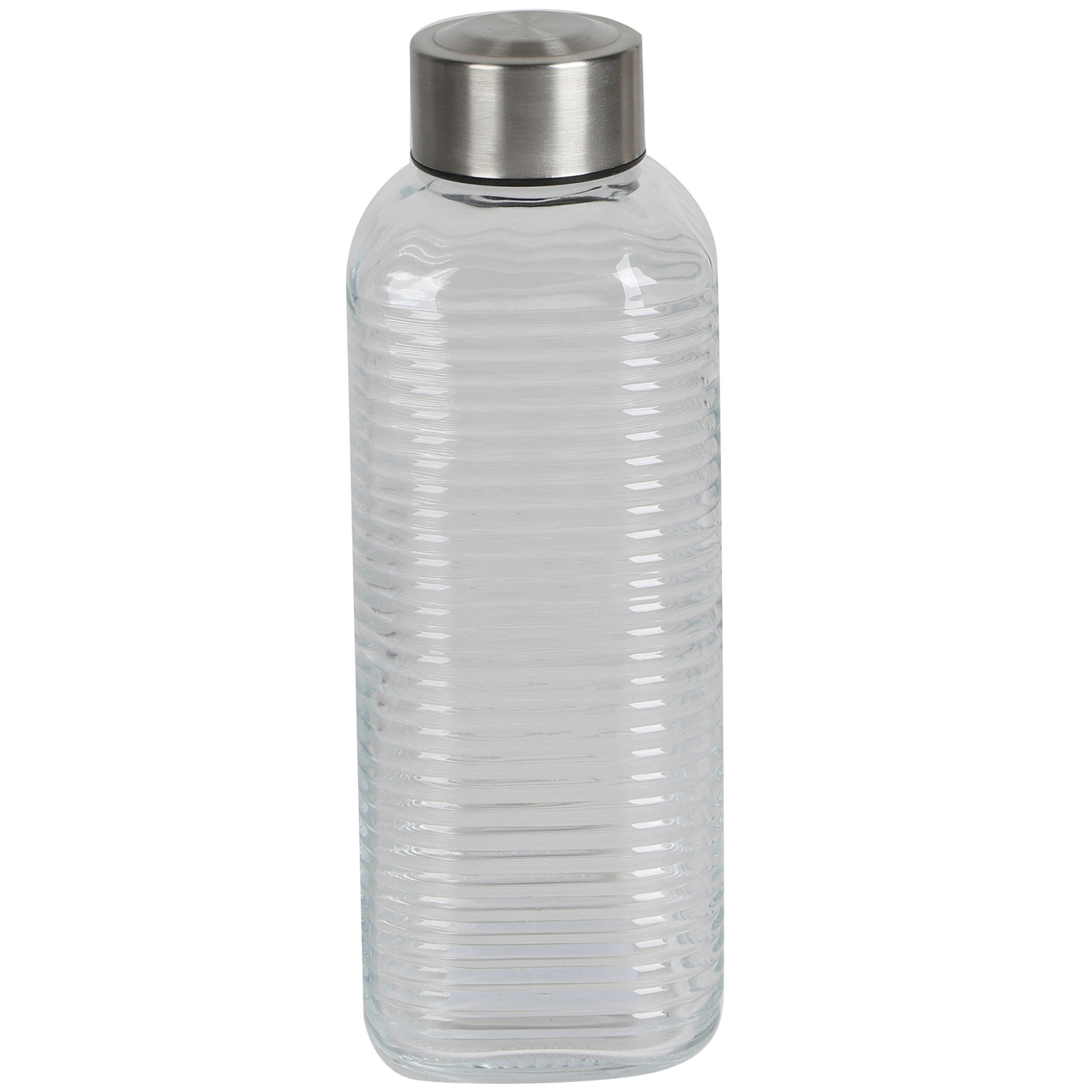 Waterfles/drinkfles Vertigo. De Vertigo glazen drinkfles is een stijlvolle en praktische keuze voor dagelijks gebruik. De fles is gemaakt van helder transparant glas en voorzien van een roestvrijstalen dop. Met een inhoud van 750 ml is de fles ideaal voor water en andere koude dranken. Dankzij het strakke ontwerp past de Vertigo drinkfles zowel thuis als op kantoor. Inhoud: 750 ml. Afmeting: 8 x 8 x 24 cm.