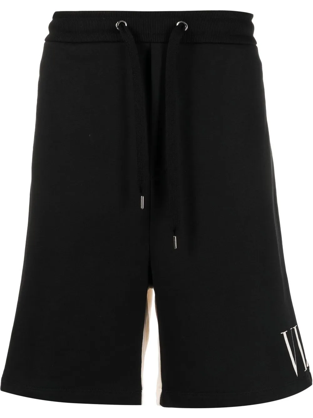 Noir/blanc, coton, modèle bicolore, logo imprimé et orné, taille haute, taille élastique à lien de resserrage, poches latérales fendues, poche arrière plaquée, coupe droite, longueur au dessus du genou.