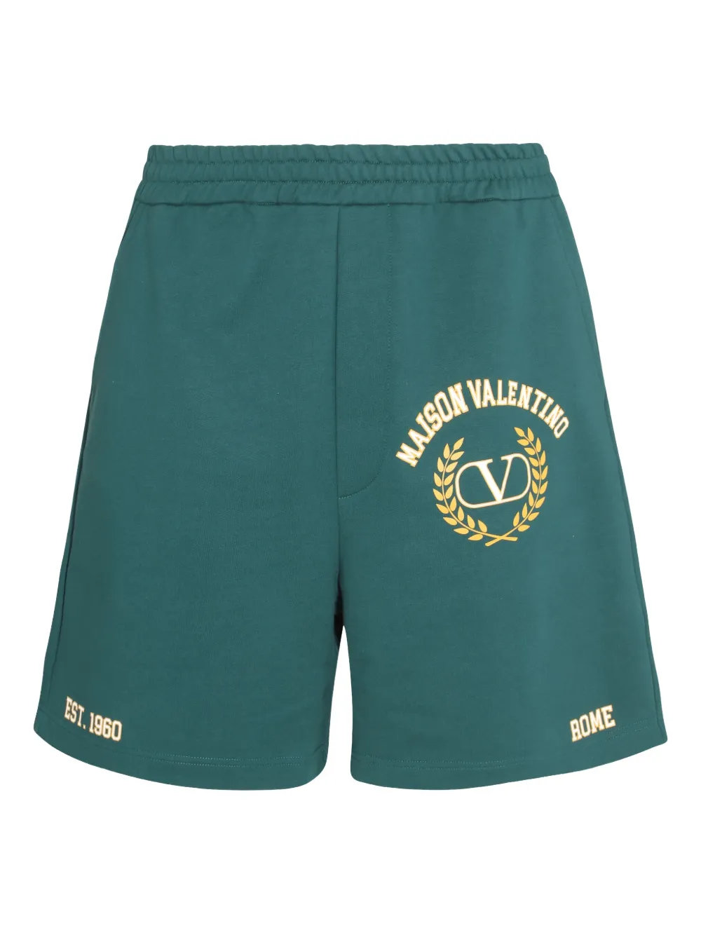 Prêt-à-porter Valentino, vert Emerald, coton, texture polaire, logo imprimé sur le devant, détail VLogo Signature, ceinture élastique, poches latérales fendues, longueur au dessus du genou. Le look complet comprend des accessoires Valentino Garavani.