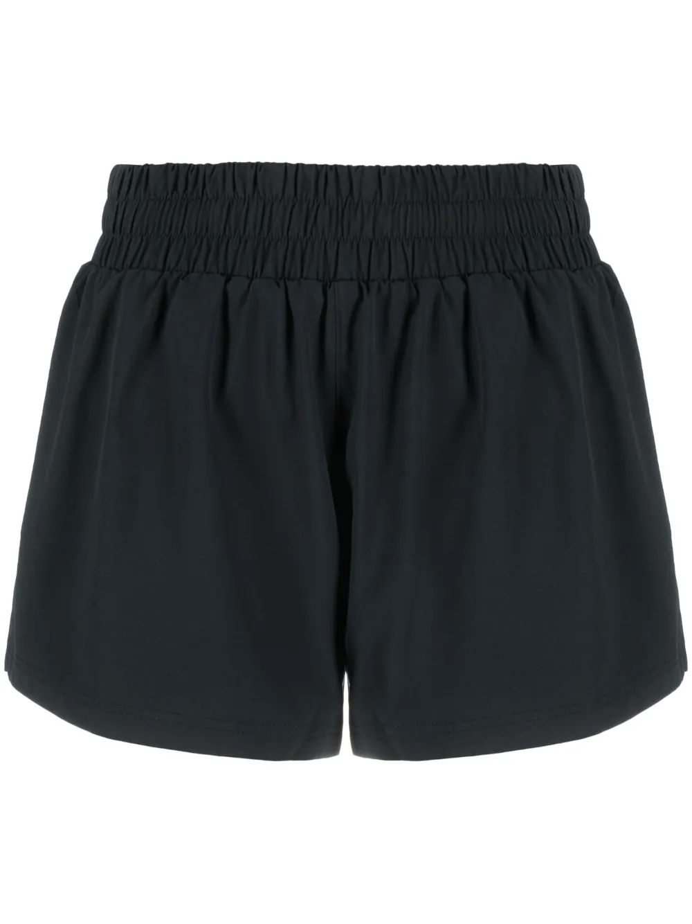 Noir, construction stretch, logo imprimé à l’arrière, ceinture élastique, poches latérales fendues, coupe courte, ourlet droit.