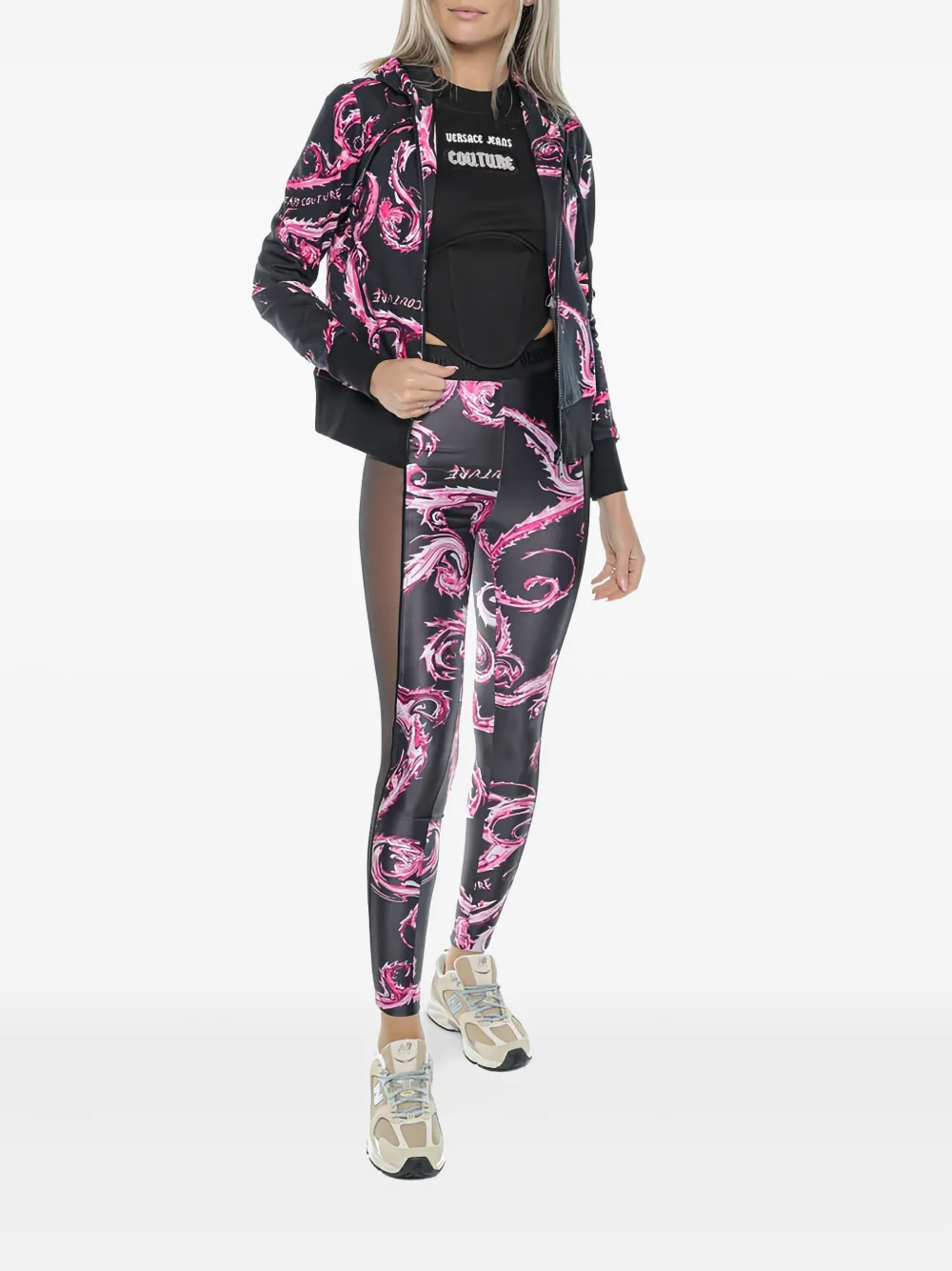 zwart patroon ritssluiting capuchon met trekkoordsluiting lange mouwen geribbelde zoom