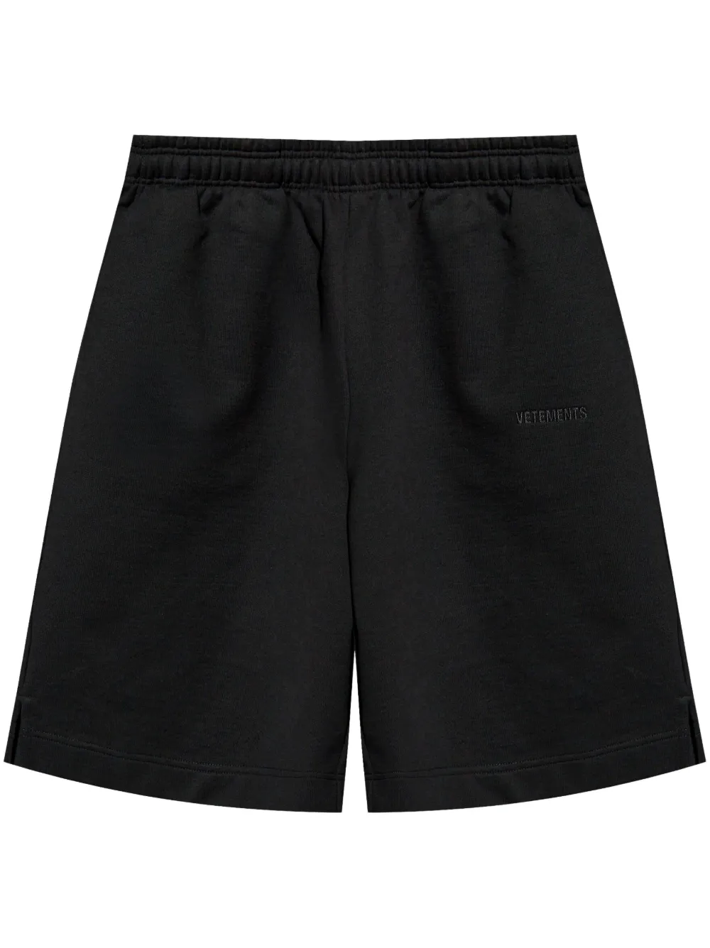 noir coton texture jersey ceinture élastique taille mi-haute deux poches latérales passepoilées logo brodé sur la poitrine longueur genou
