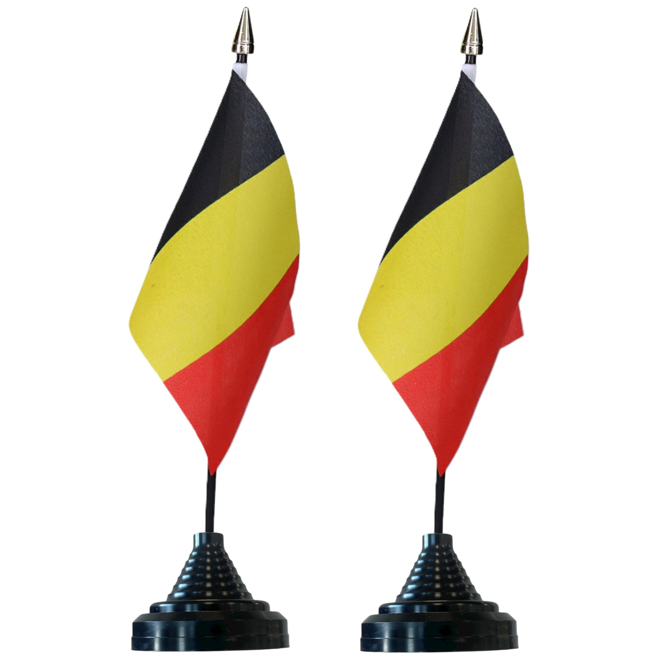 Vlag Belgie tafelvlaggetje inclusief zwarte base/standaard. Aantal: 2x. Het kleine polyester vlaggetje is ongeveer 10 x 15 cm, het kunststof stokje (inclusief vlaggetje) is ca. 27 cm lang. Het kunststof voetje is ca. 5,7 x 4 cm groot. Plaats het vlaggetje in de basis en deze blijft staan. Versieringen voor tafels en bureaus voor echte supporters. Landen thema versieringen en feestartikelen van alle landen hebben wij in onze winkel. Materiaal houder: kunststof. , Dit artikel bestaat uit:, 2x Belgie – mini vlaggetje van 10 x 15 cm op stokje – Landen vlag – H27 cm, 2x Standaard voor tafelvlaggetje – zwart – kunststof – met 1 gaatje