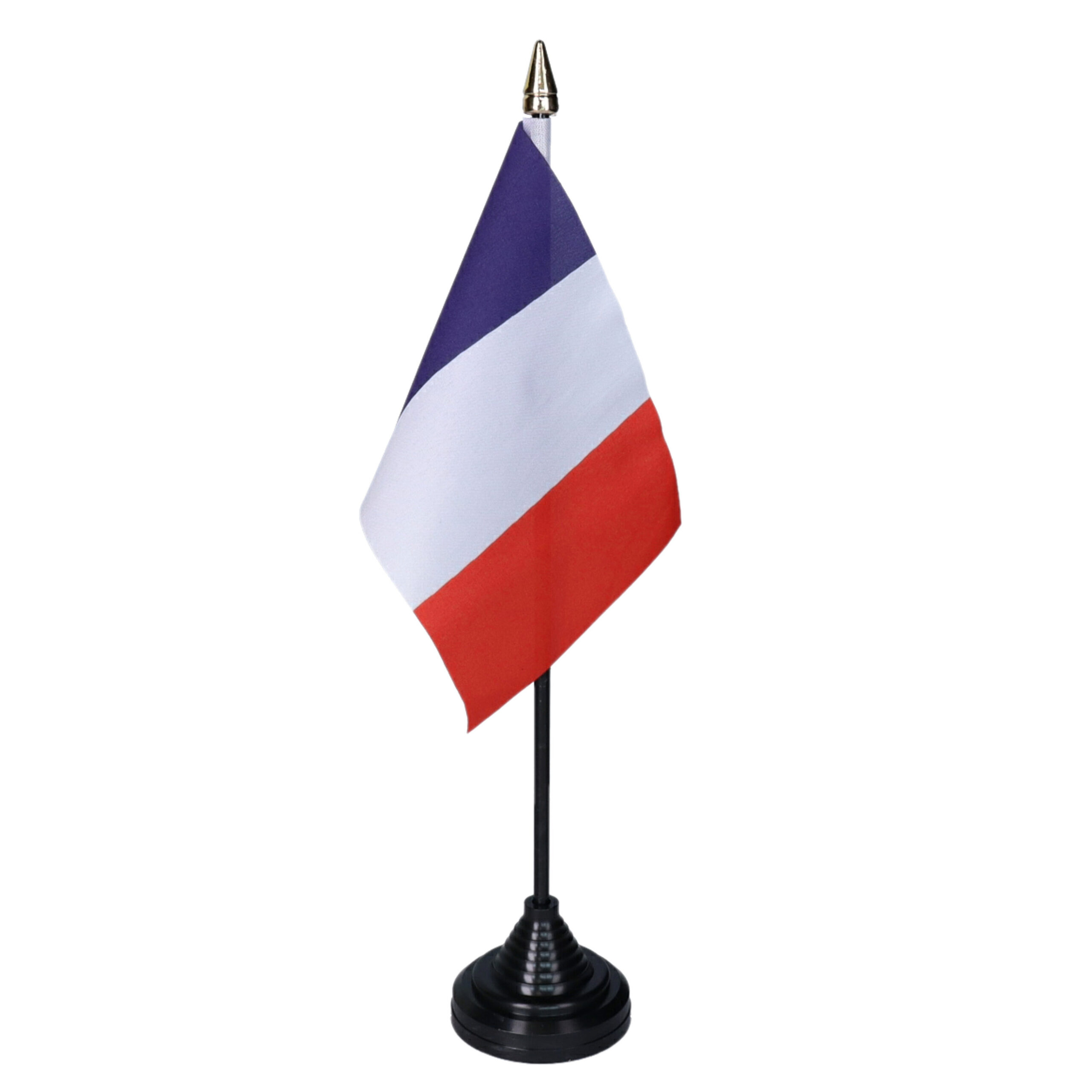 Vlag Frankrijk tafelvlaggetje inclusief zwarte base/standaard. Aantal: 1x. Het kleine polyester vlaggetje is ongeveer 10 x 15 cm, het kunststof stokje (inclusief vlaggetje) is ca. 27 cm lang. Het kunststof voetje is ca. 5,7 x 4 cm groot. Plaats het vlaggetje in de basis en deze blijft staan. Versieringen voor tafels en bureaus voor echte supporters. Landen thema versieringen en feestartikelen van alle landen hebben wij in onze winkel. Materiaal houder: kunststof. , Dit artikel bestaat uit:, 1x Frankrijk – mini vlaggetje van 10 x 15 cm op stokje – Landen vlag – H27 cm, 1x Standaard voor tafelvlaggetje – zwart – kunststof – met 1 gaatje