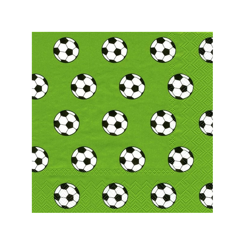 Voetbal thema tafel servetten. 40x stuks 3-laags servetten in het groen. Met voetbal ballen print. Formaat uitgevouwen: 33 x 33 cm. Materiaal: papier. Tafel dekken, kinder feestje.