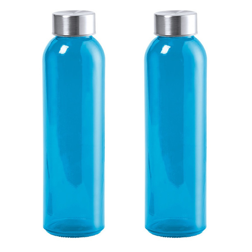 2x glazen waterfles/drinkfles AQUAMAN, in de kleur Blauw, met RVS dop en inhoud van 500 ml. Afmeting: ca. D6,5 x H22 cm. Inhoud: ca. 500 ml, 55 cl. Gewicht: ca. 250 gram. Materiaal fles: verhard glas. BPA-vrij: ja. Geschikt voor magnetron: nee. Geschikt voor vaatwasser: ja, de dop niet. Geschikt voor vriezer: nee. Wordt geleverd in een kartonnen doosje.