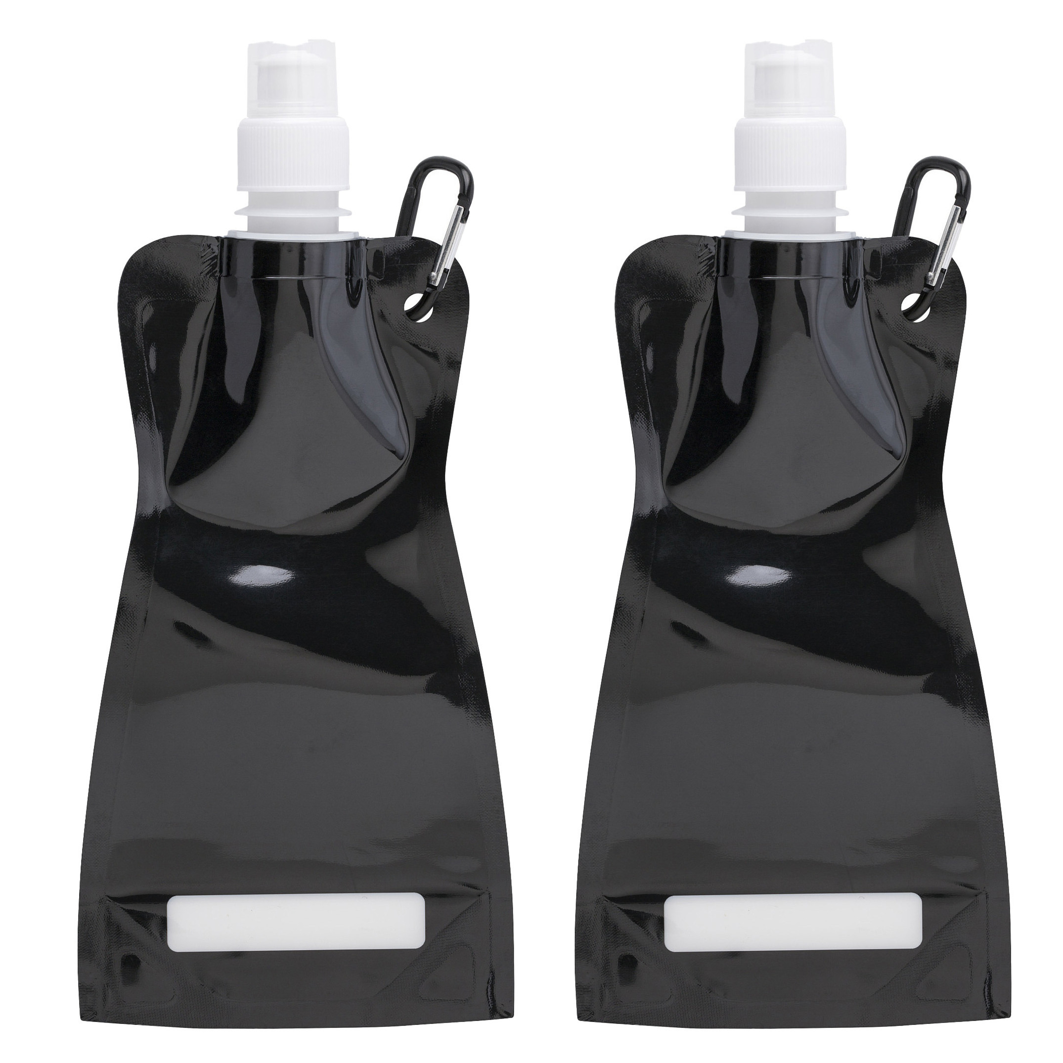 2x waterfles of drinkfles opvouwbaar en lekdicht in het zwart. Met schroefdop/kliksluiting en een handige karabijnhaak. Afmeting: ca. 26,5 x 11,9 x 3,1 cm. Inhoud: ca. 420 ml. Materiaal: PP kunststof. Gewicht: 24 gram. Deze handige opvouwbare en ruimtebesparende waterfles is ideaal voor elke situatie zoals op het strand, een lange wandeling of op een festival.