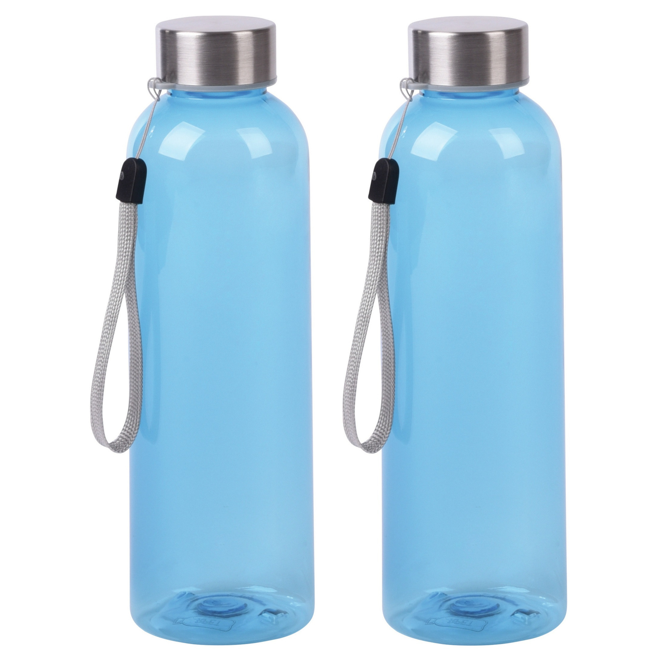 2x deze handige waterfles Olympic van het merk Bellatio Design, in de kleur lichtblauw heeft een lekvrije, rvs schroefdop. Hierdoor is deze waterfles handig voor onderweg of te gebruiken als bidon/sportfles in de sportschool of op het sportveld. Met een formaat van ca. D6 x H20 cm en een inhoud van ca. 500 ml, is er voldoende capaciteit voor water of een een verfrissend sportdrankje, om gehydrateerd te blijven. Deze sport en vrije tijd drinkflessen zijn geschikt voor zowel kinderen en volwassenen.