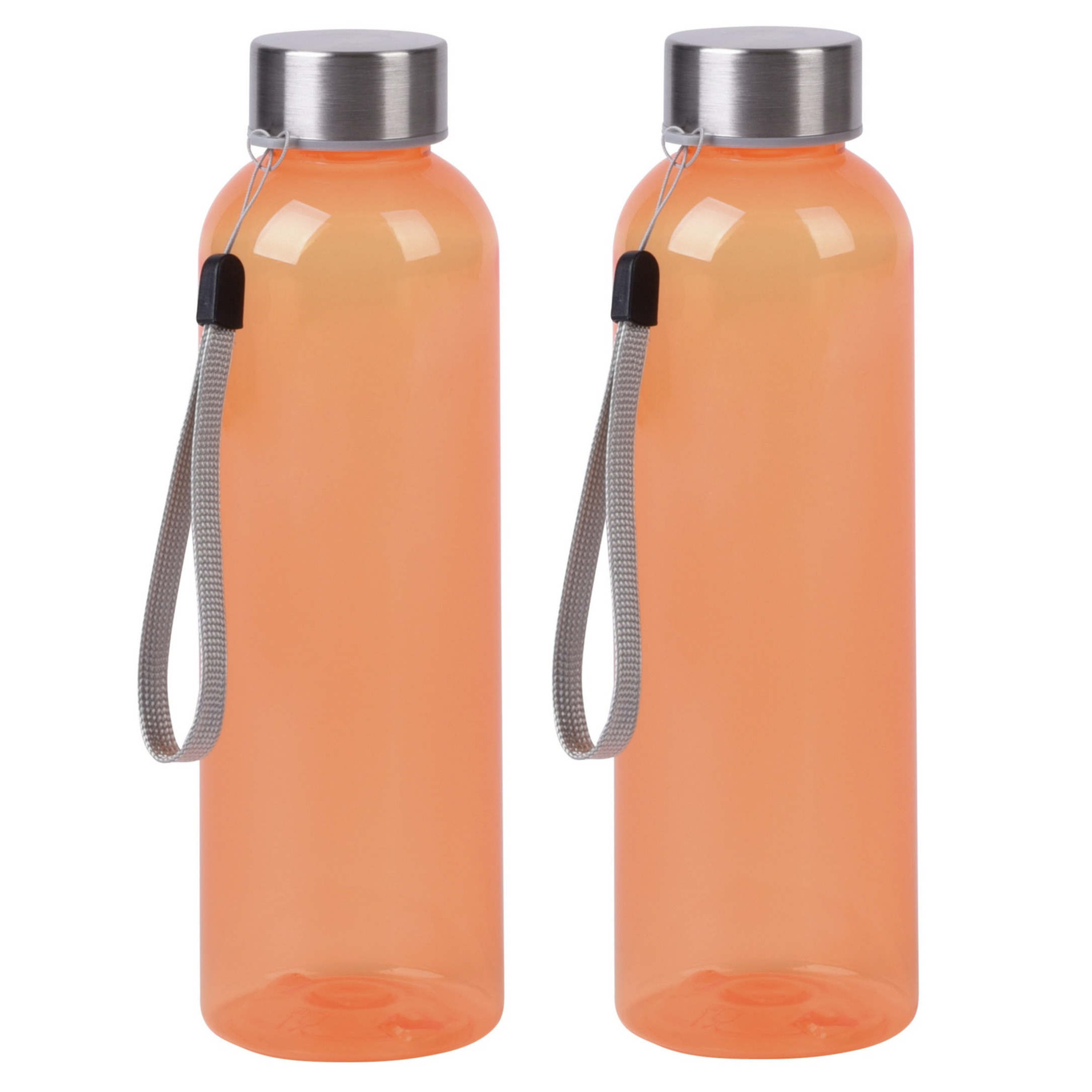 2x deze handige waterfles Olympic van het merk Bellatio Design, in de kleur oranje heeft een lekvrije, rvs schroefdop. Hierdoor is deze waterfles handig voor onderweg of te gebruiken als bidon/sportfles in de sportschool of op het sportveld. Met een formaat van ca. D6 x H20 cm en een inhoud van ca. 500 ml, is er voldoende capaciteit voor water of een een verfrissend sportdrankje, om gehydrateerd te blijven. Deze sport en vrije tijd drinkflessen zijn geschikt voor zowel kinderen en volwassenen.