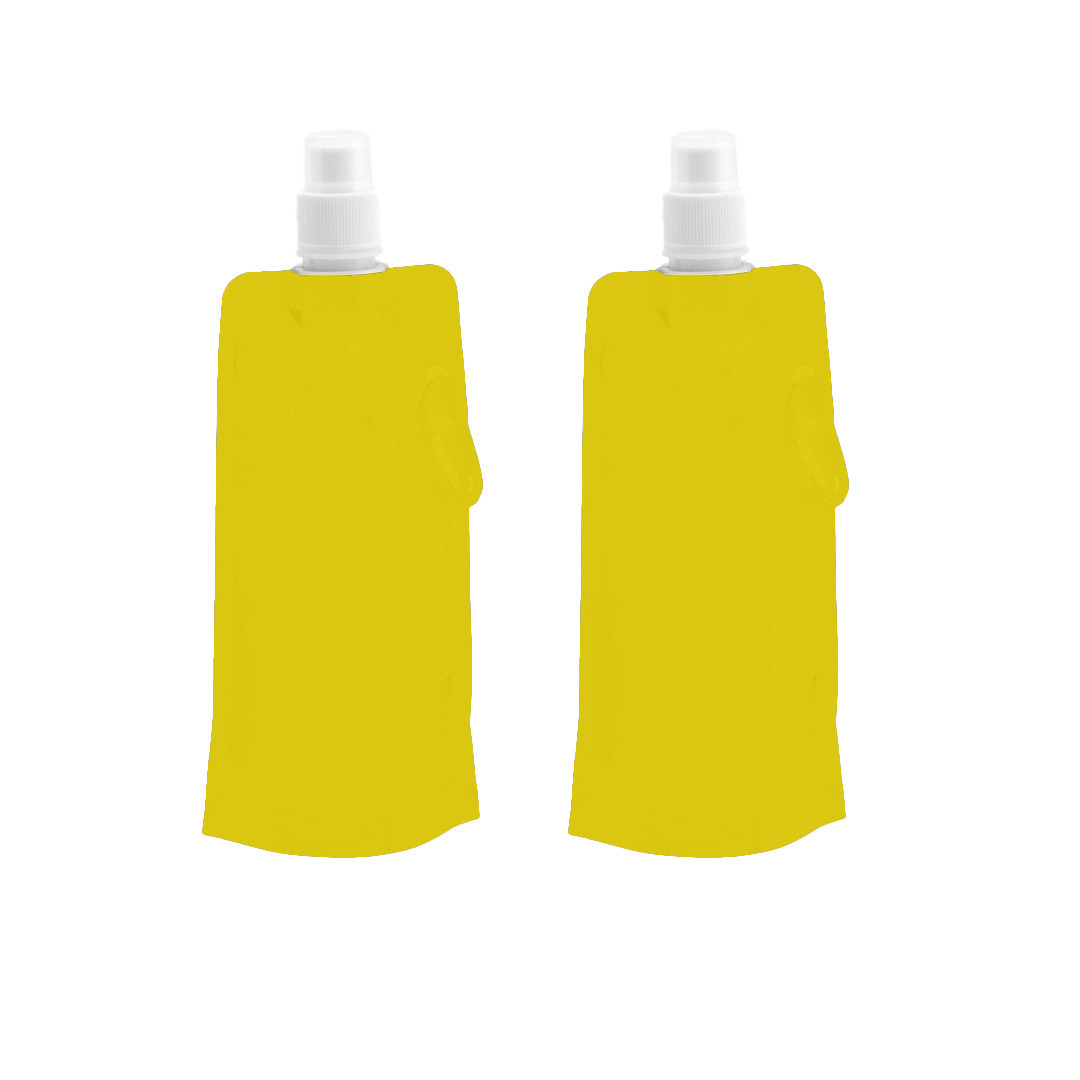 2x waterzak geel 400 ml opvouwbaar met haak. Handige waterfles van opvouwbaar en oprolbaar plastic. Met een haakje zodat u deze overal aan kunt hangen. De waterfles wordt geleverd met een drinkmondje erop en is navulbaar. Inhoud: Ongeveer 400ml. Materiaal: Kunststof. Kleur: Geel. Outdoor festival gadget benodigdheden omdat je ze heel makkelijk kunt opbergen als je ze leeg hebt. Onmisbaar tijdens je wandelingen/hike.