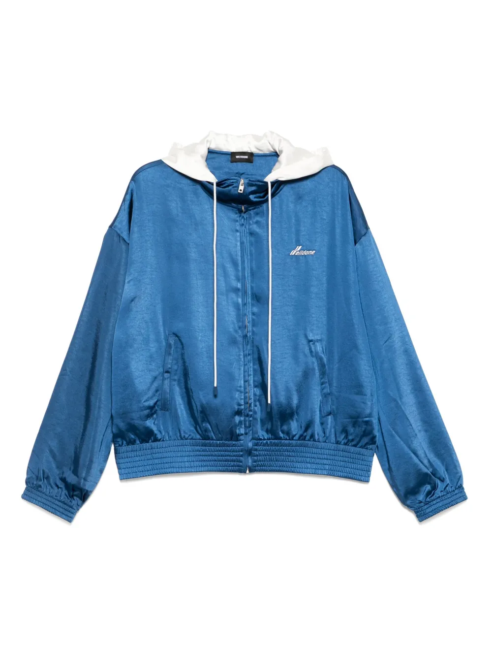 bleu marine fermeture zippée avant deux poches avant fendues capuche souple à lien de resserrage poignets et bords côtelés