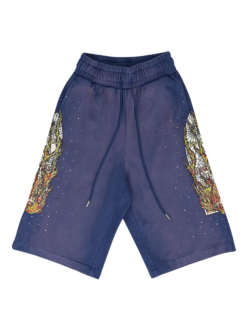 bleu indigo imprimé graphique lien de resserrage ceinture élastique poche plaquée au dos