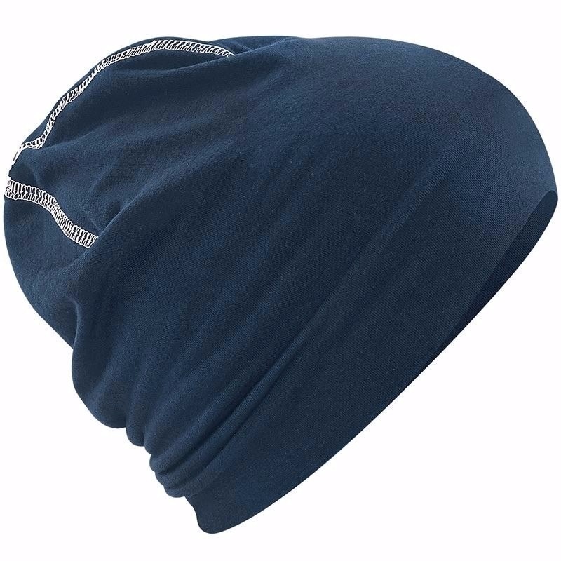 Katoenen beanie sport beanie navy blauw voor volwassenen. Gemaakt van zeer dicht geweven micro-gebreid katoen.