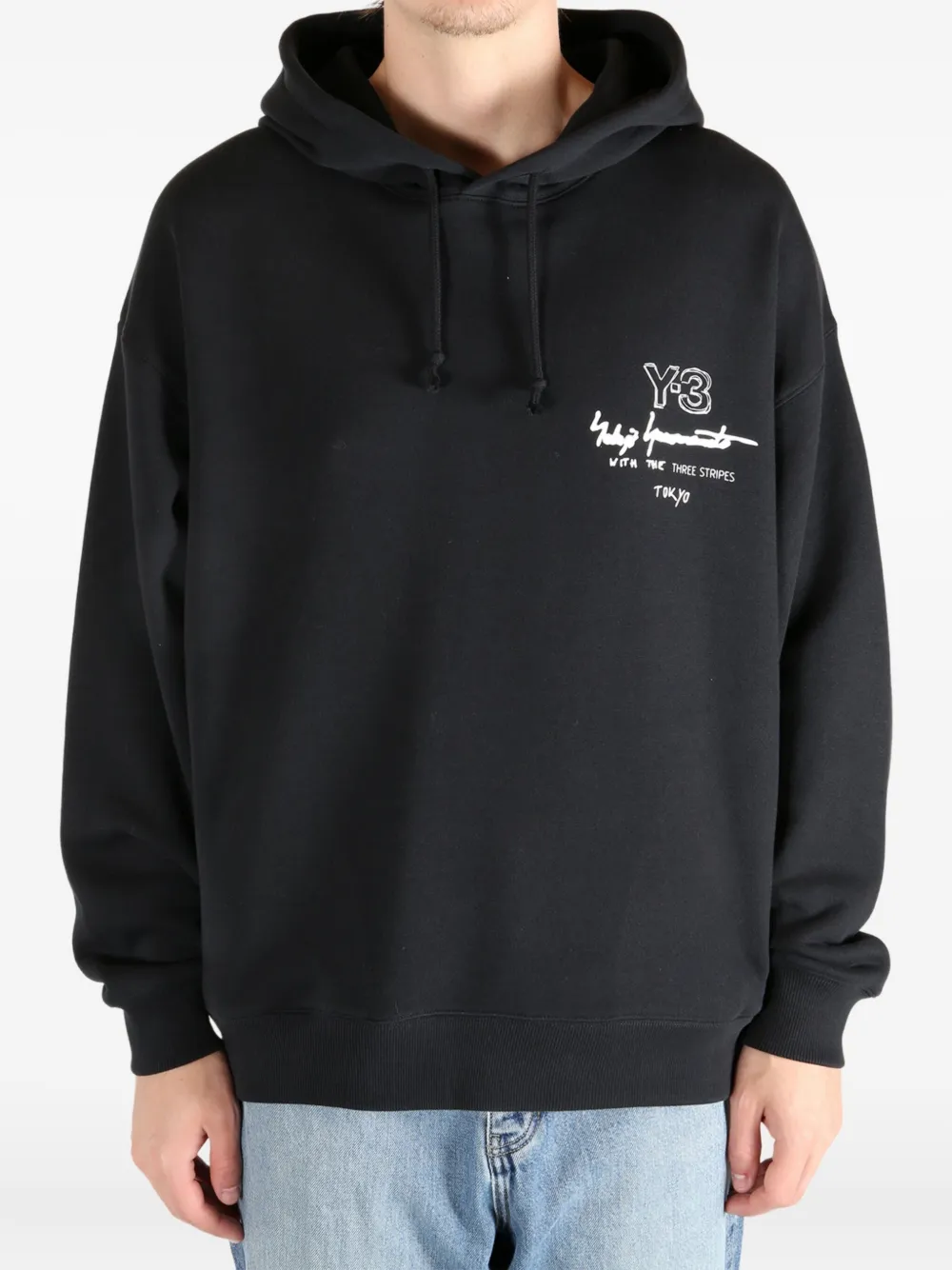 zwart katoen capuchon met trekkoordsluiting zijvak lange mouwen grafische print