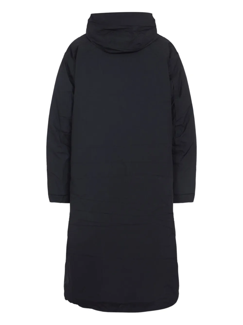 zwart halslijn met capuchon ritssluiting lange mouwen klepzakken gewatteerd design