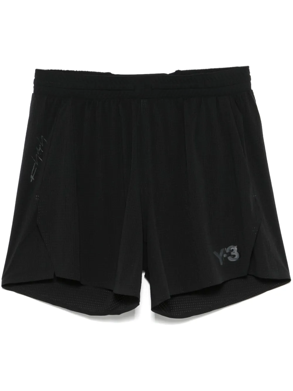noir polyamide recyclé mélangé construction stretch design perforé taille élastique à lien de resserrage logo imprimé sur le côté fentes latérales poche arrière zippée sans doublure coupe courte ^
