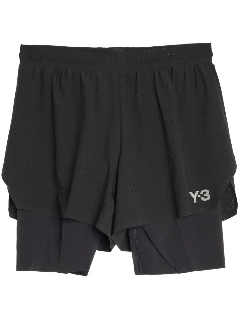 noir ceinture élastique effet superposé détails de perforations logo imprimé sur le côté