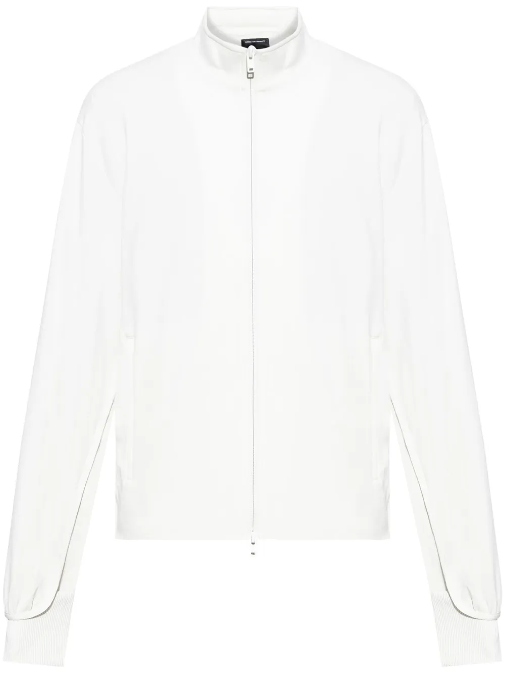 blanc fermeture zippée devant manches longues deux poches latérales passepoilées poignets élastiqués patch logo intérieur ^