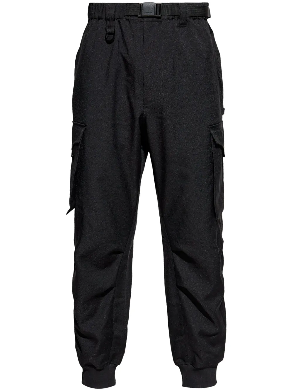 noir tissage sergeappliqué logo taille mi-haute taille ceinturée fermeture à braguette dissimulée et bouton passants de ceinture coupe droite deux poches latérales passepoilées poches latérales cargo deux poches passepoilées boutonnées à l’arrière ^