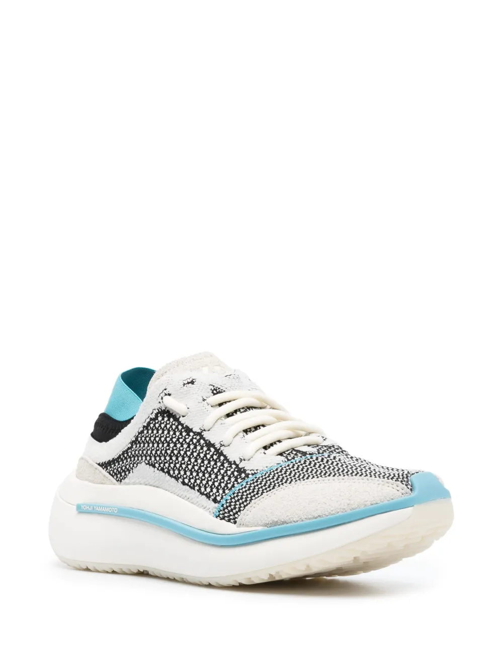 wit/zwart/blauw vlakken gebreide bovenkant veters aan voorkant ronde neus logo op het hielstuk chunky rubberen zool ^