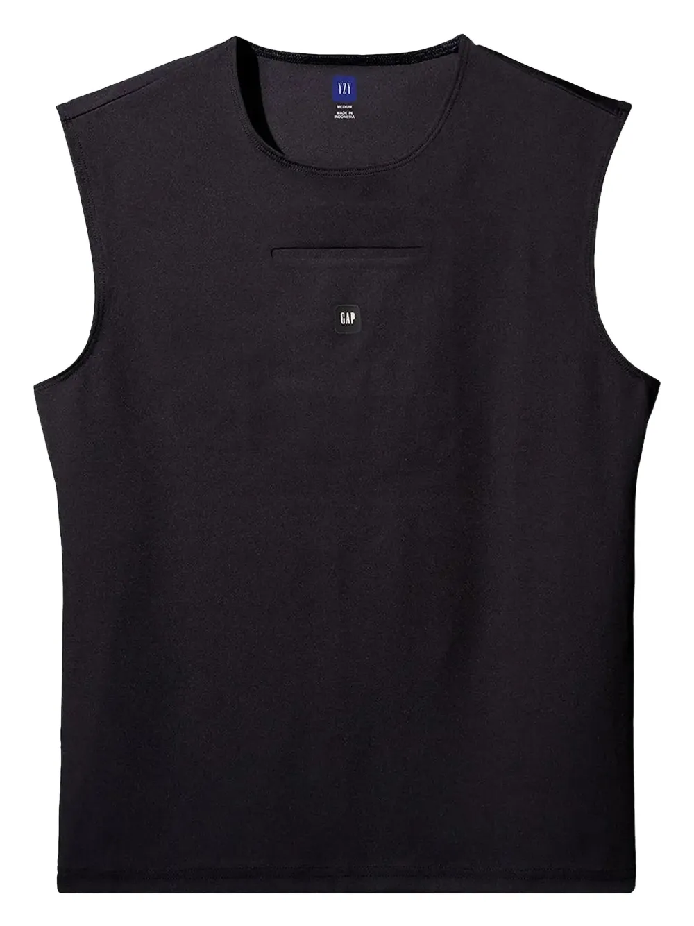 noir design sans manches col rond détail de logo coupe ajustée ourlet droit