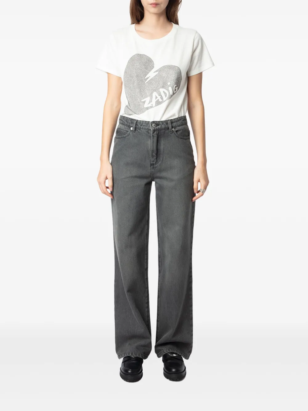 grijs knoop- en ritssluiting aan de voorkant klassiek vijf zakkenmodel riemlussen